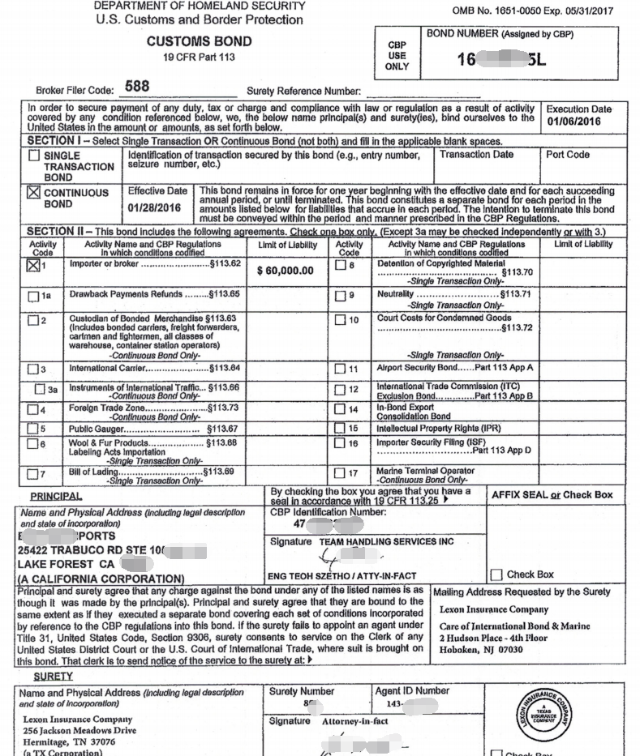 Bond分为两种,Annual Bond和Single Bond,意思是年度有效和单次有效,就比如是健身房的年卡和次卡。Single Bond是按每次进口的货值来收取费用,并有一个ISF Bond的低消(大概150USD)。一般来说,如果你预计一年内进口美国次数会超过3次,那购买Annual Bond是划算的。